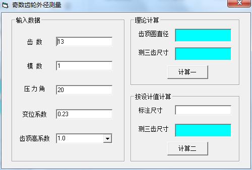 奇数齿外径测量最新版是一款页面简洁大方,适用范围广泛,功能丰富强大,作逻辑简单易上手的专业计算工具,通过这个工具用户可以立即计算出结果,从而节省大家的计算时间,大家只需要打开奇数齿外径测量最新版,需要输入自己的齿数、模数、压力角、变位系数等内容就可以计算出结果。