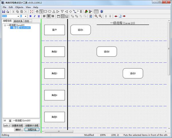 海涛流程集成设计工具最新版是一款企业流程设计优化工具,支持多层次流程框架,每个活动可以有上下级流程跳转、输入/输出交付件特别适合IPD实施企业的设计、讨论、优化所需。