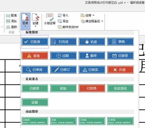 1、安装福昕PDF阅读器(Foxit Reader)之后,注释—图章,点开图章
