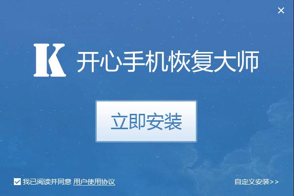 一、在本站下载开心手机恢复最新版安装包,并打开,可以点击【自定义安装】,设置软件的安装位置等。