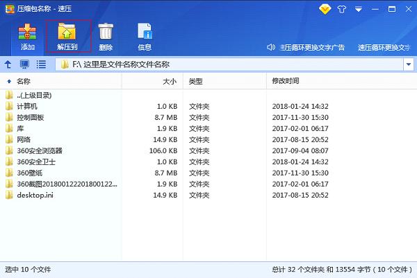 打开速压,找到想要进行解压的压缩文件并选中,在软件主界面上点击【解压到】选项。