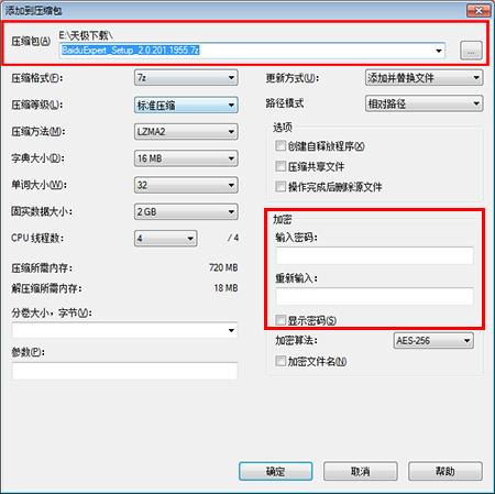 4.为 7z 与 ZIP 提供更完善的 AES-256 加密算法