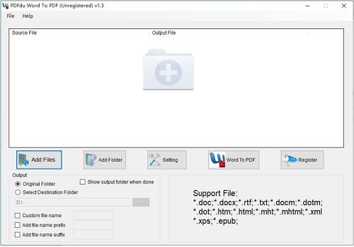 PDFdu Word To PDF Converter最新版是一款作简便且实用的Word转PDF转换器,PDFdu Word To PDF Converter正式版功能非常全面,可以帮助您将doc、docx、rtf、txt、docm、dotm、dot、htm、html、mht、mhtml、xml、xps、epub等常见的电子文档转换与输出为PDF。
