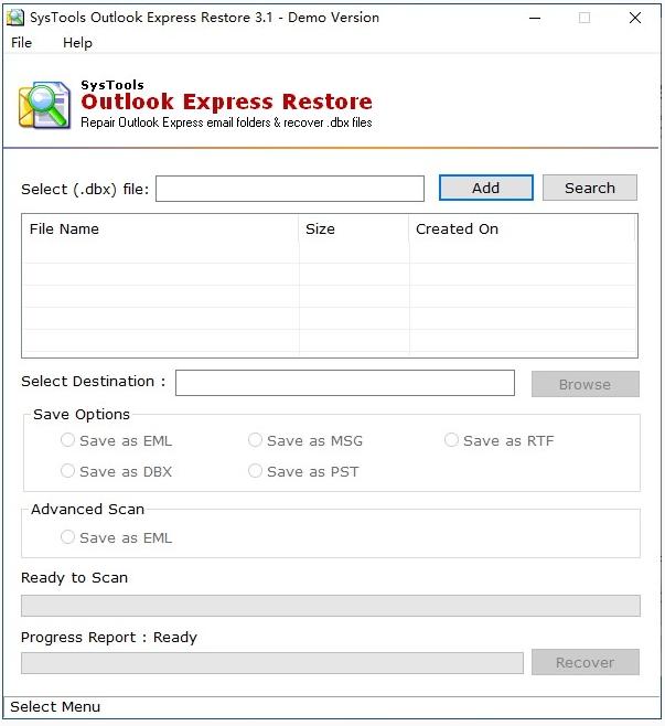 如果您的DBX文件已严重损坏,则不要进行常规的DBX恢复;我们建议您选择“高级扫描”模式以还原邮件。这将帮助您执行文件的深入扫描,以修复DBX文件并将其保存为Outlook Express Restore工具提供的任何其他文件格式。