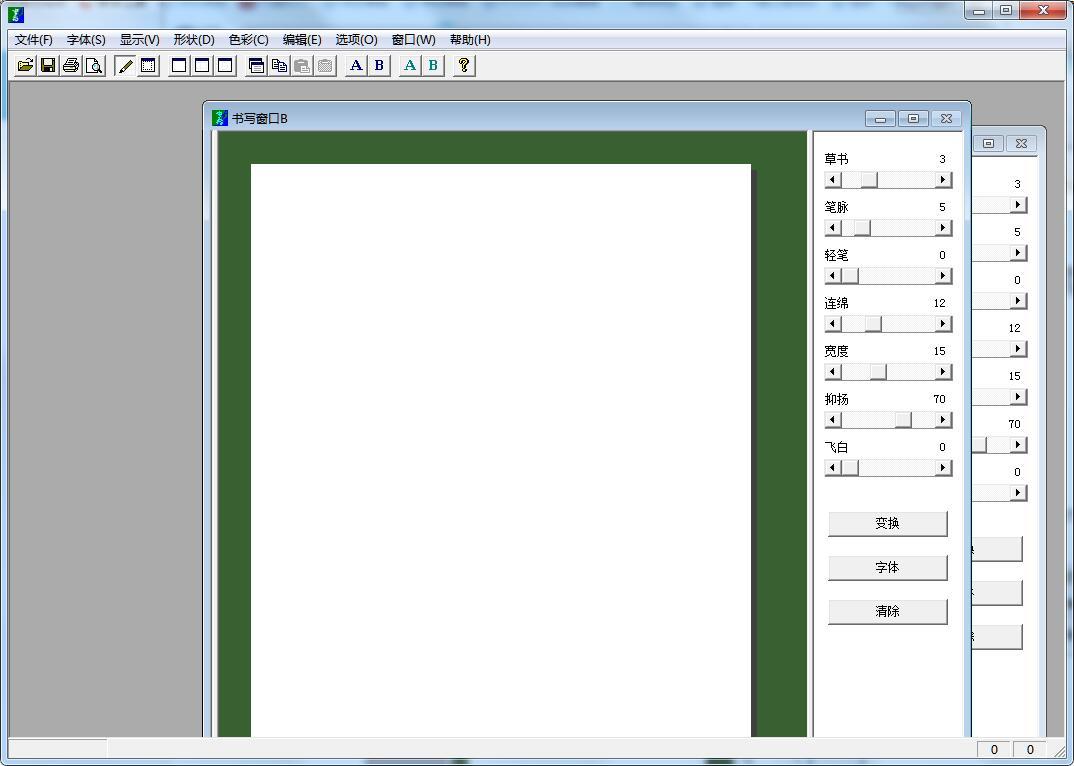 字体转换器最新版是一款实用高效的字体转换工具。字体转换器版支持行书、书、王羲之、怀素、徽宗、苏轼等十来种风格。字体转换器最新版程序预设了行书、书、王羲之、怀素、徽宗、苏轼等风格。用户使用时用鼠标当笔在屏幕上写几个字,选择喜欢的风格,点击变换就可以欣赏杰作了。
