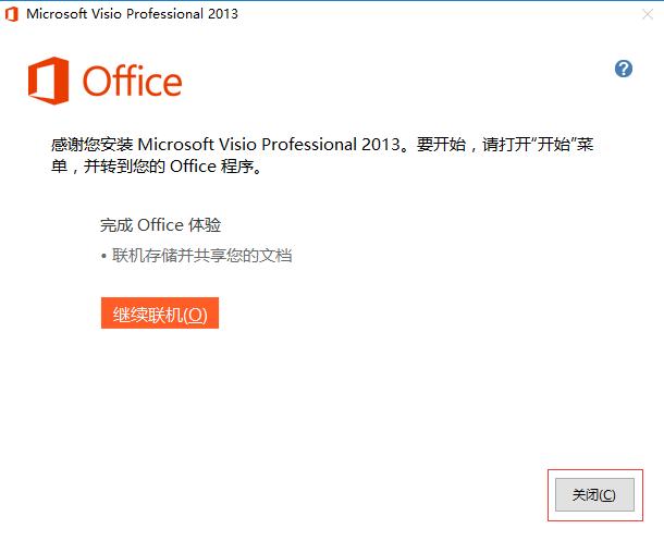 5.点击关闭,Micsoft Visio 2013软件安装成功