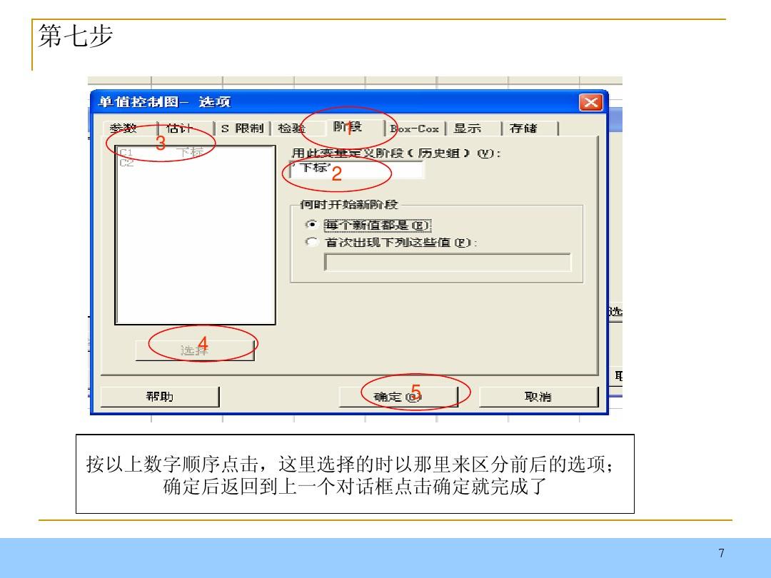 7、需要根据图中的顺序依次选择进行设置。作【阶段】——【用此变量定义阶段】——【图3空白处】——【选择】——【确定】