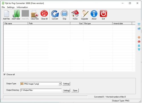 Ppt to Png Converter 3000最新版是一款专业实用的PPT转PDF转换器,Ppt to Png Converter 3000版可以帮助您将PPT幻灯片文件的每一页转换为一张PNG图片,软件还可以批量导入要转换的PPT文件,设置图片格式、转换模式、图片尺寸、图片水印等参数。