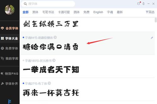 输入字体关键词或者字体序号即可搜索出现你想要字体