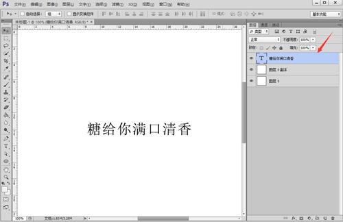 第二步:在PC软件中,单击选中PS软件图层列表中需要使用iFonts字体助手 字体样式的文字图层