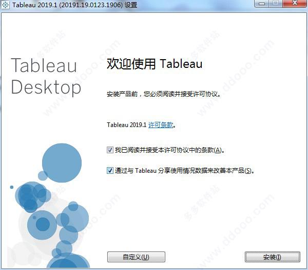 1、下载软件压缩包文件,首先点击“Table Desktop Pfessional Edition 2019.1.0 x.exe”进行原版安装。