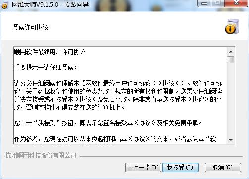 2、阅读“授权协议”。如果你接受协议中的条款,单击我接受继续安装。如果你选定取消,安装程序将会关闭。必须接受协议才能安装。