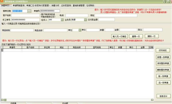 通用单欠款单管理软件最新版:主要面向企业事业单位,店铺收银要打印单的场所。