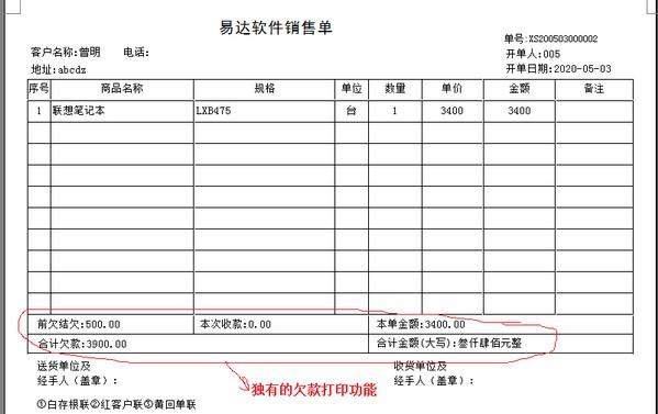 通用单欠款单管理软件功能