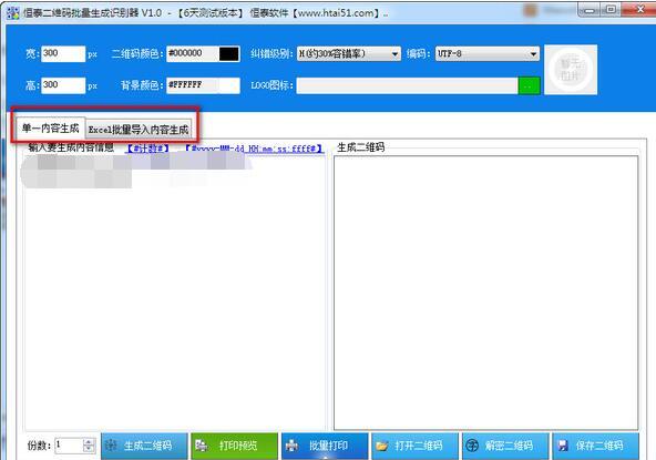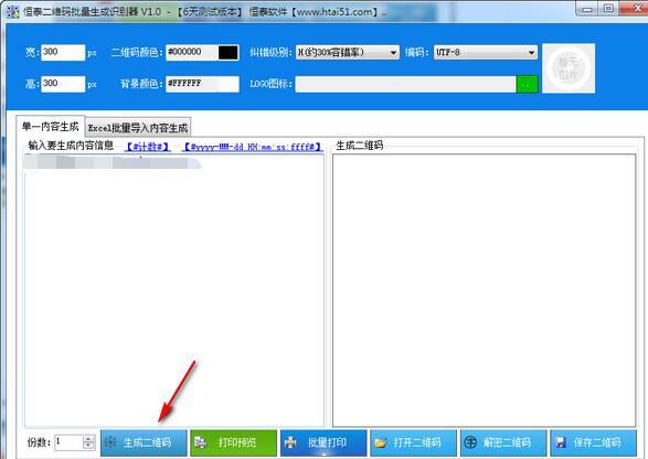 1、恒泰二维码批量生成识别器版支持自定义宽、高、颜色、背景颜色、纠错级别、logo、编码;