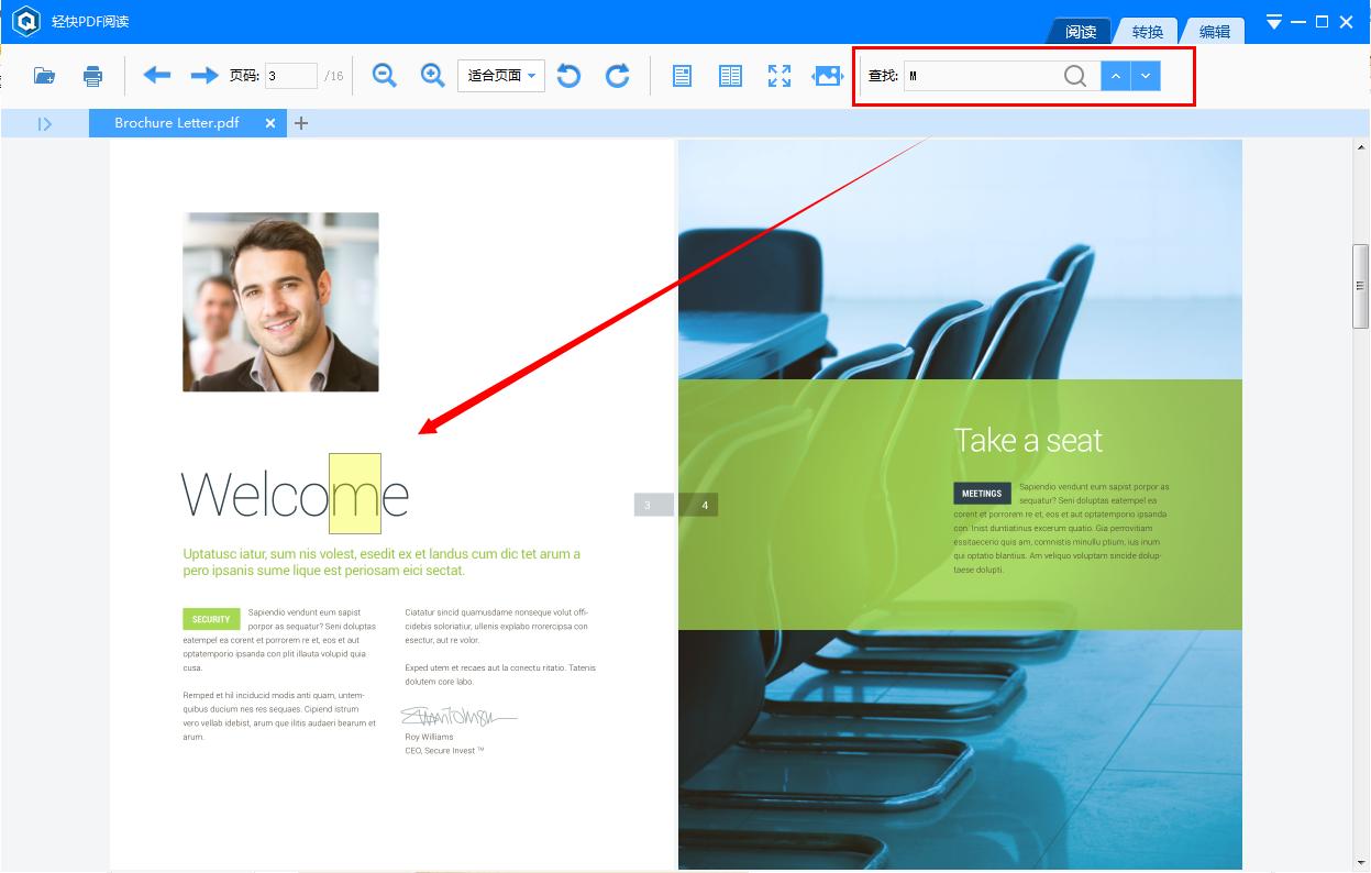 轻快PDF阅读器集成精准的搜索功能,帮助用户在阅读过程中,搜索任何所需的数据,而不需要一页页重复阅读查找,省去用户的搜索难题。用户在搜索框中输入内容,软件即会自动搜索并定位到该内容位置。同时,若是对英文进行搜索,软件会自动提取英文单词中的相关字符,用户可通过上下按键逐步查找,不会产生任何搜索遗漏问题。