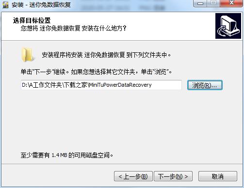 5、安装程序准备开始安装迷你免数据恢复到您的电脑中。单击安装继续此安装程序。如果您想要回顾或改变设置,请单击上一步。