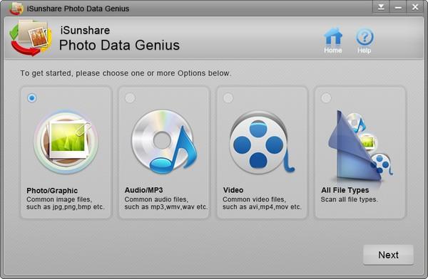 iSunshare Photo Data Genius(照片数据恢复工具)是一款默认设置为恢复丢失照片的实用程序。如果选择,当然可以使用丢失的音频和恢复。所有丢失的照片和其他数据都可以从分区、外置硬盘、U盘、智能手机、数码相机、记忆棒、MP4等存储介质中恢复。无论丢失的数据被意外删除或擦除、格式化、被病毒攻击或其他原因损坏,Photo Data Genius总能有效、安全地恢复丢失的数据。