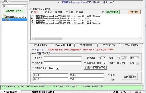 7、支持单文档替换,替换页眉页脚;替换文件名;替换文件后缀;多内容批量替换