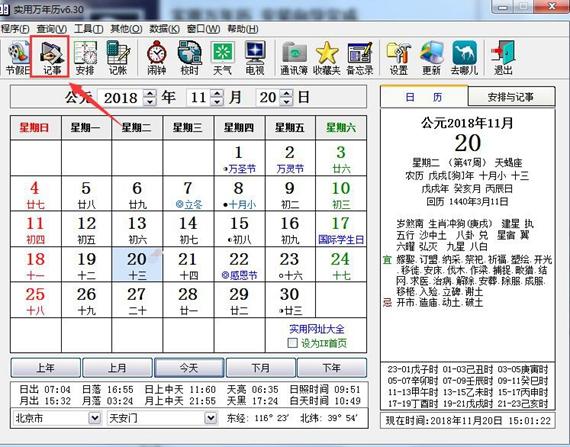 软件集成了世界时间、闹钟定时提醒、通讯簿、网络校时、语音报时、收藏夹、天气预报、文件保险箱等实用工具,此外它可以将生等纪念、每记事、程安排等添加到万年历中,还可对吉、记事进行搜索与查看,并可以最小化或自动隐藏显示当公农历及时间。