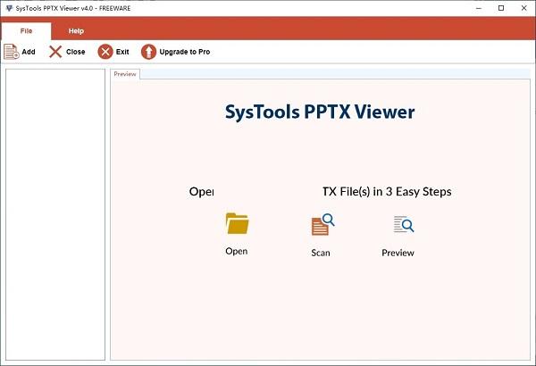 PPTX Reader软件可用于打开和浏览大量的PPTX文件。PPTX File Viewer也适用于查看包含多张幻灯片的PPTX文件。使用以下三个文件添加选项中的任何一个: