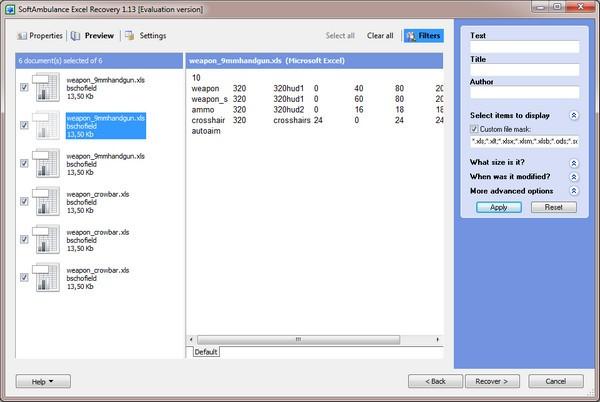 从所有 Micsoft 版本恢复所有 MS Excel 文件格式,并支持 Apache Open Office/Star Office Calc 和 Corel WordPerfect Quatt P 文件。