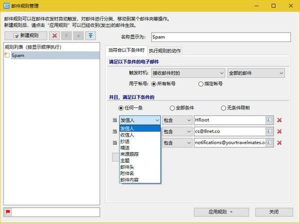 可匹配邮件头、可自动回复邮件(指定模版和发信箱)、执行指定动作!