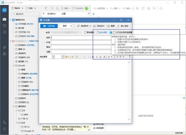 阅读追踪:该软件会向用户提供发送以及阅读反馈,发送方可以知道自己的邮件发送状态、