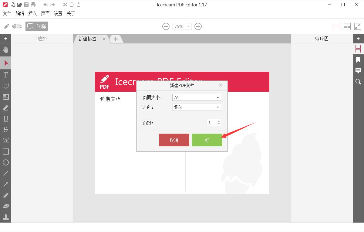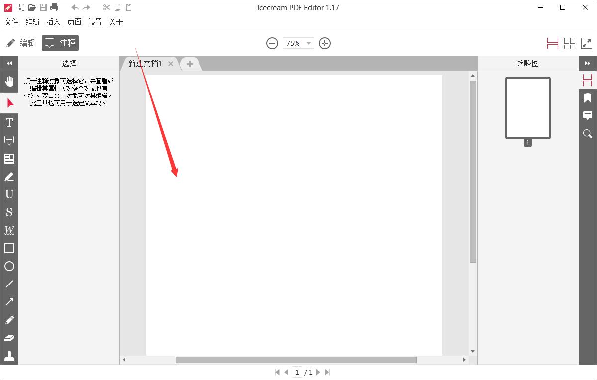 5、新建完成之后,进入新建的PDF编辑窗口;