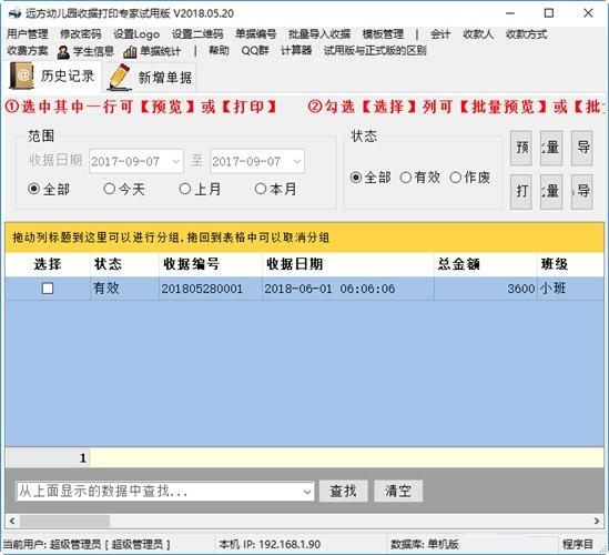 远方幼儿园收据打印专家软件特色