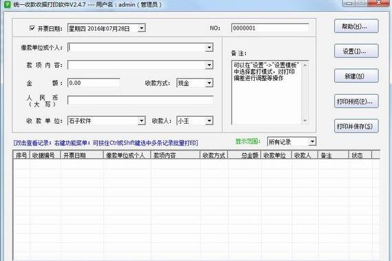 统一收款收据打印更新志