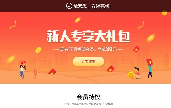 五、安装完成后会出现“新人专享大礼包”福利页面,开通福昕会员可立减30元。小编建议大家根据自身需求决定是否购买。
