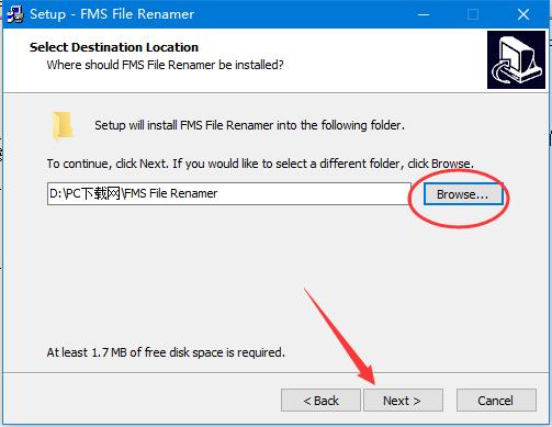 2、软件默认安装路径为“C:/Pgram Files (x86)/FMS File Renamer”,点击Bwse可以选择其它位置安装,点击“Next”继续安装