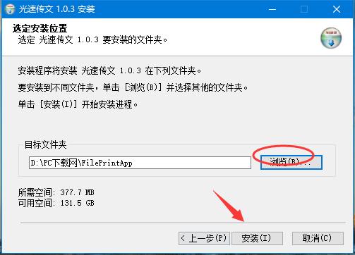 3、软件默认安装位置为“C:/Pgram Files (x86)/FilePntApp”,点击“浏览”可以选择其它位置安装,点击“安装”即可
