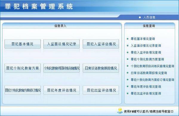 1.罪犯档案管理系统最新版管理:罪犯基本情况、入监面谈情况记录、罪犯入监评估情况、罪犯个别化教育方案、个别化教育项目训练实施情况、常谈话教育跟踪情况、罪犯个别化教育方案修订情况、罪犯年度评估情况、罪犯出监评估情况;