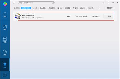 方法二:安装并打开360软件管家,在卸载选项的列表中找到打字通2010软件,点击卸载即可