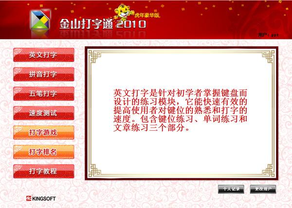 打字通2010是款专为刚接触电脑的用户打造的打字练习工具。打字通2010具有英文打字、拼音打字、五笔打字、速度测试四大功能模块。打字通2010中还集成了非常多的初高级打字游戏,为用户提供了英文打字、拼音打字等练习模块。