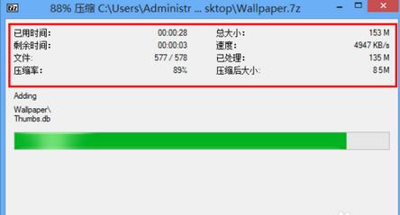 4.正在压缩文件中,压缩比较大的文件时,建议等待压缩完后再作其它作,在这可以看到文件压缩前和压缩后的大小。
