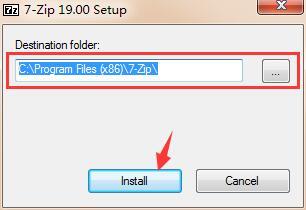 一、在本站下载最新版的7-zip安装包,双击运行,设置好安装目录,点击“install”;