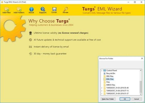 Turgs EML Wizard是一款专门用来转换EML文件的工具,通过双重选择多个EML文件,帮助用户快速、高效完成转换的工作。软件支持多种格式的转换,并且能够很好的保留源文件的各项数据,用户能够将多个EML文件合并到单一的PST或MBOX格式。