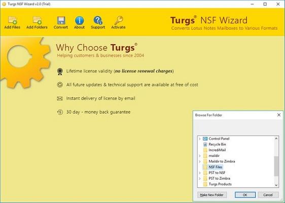 Turgs NSF Wizard版是一款功能强大的文件转换软件,Turgs NSF Wizard最新版可以将NSF文件从IBM Notes和Lotus Notes多个10 +文件格式,可以预览和选择NSF邮件文件夹转换,Turgs NSF Wizard版支持加密和保护NSF数据库文件和邮件翻译语言。