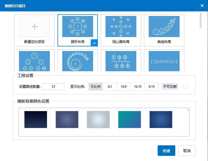 1、双击打开安装好的软件,用户可以点击新建空白项目,选择需要的布局模式