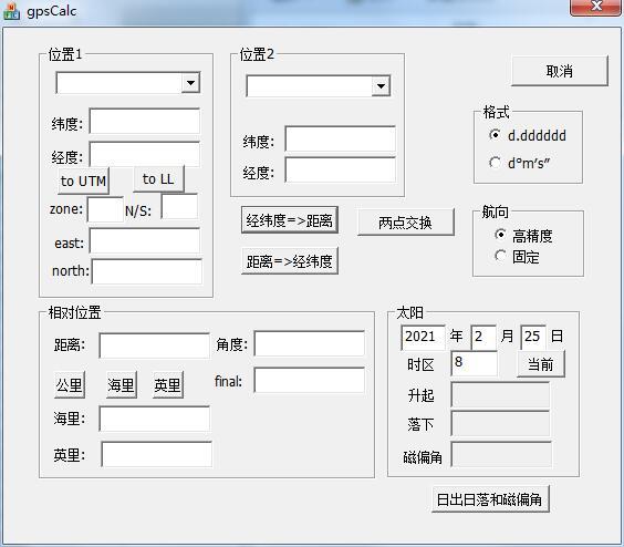 2、两点距离和方向的计算,包括大圆(最短)和固定(航行)距离