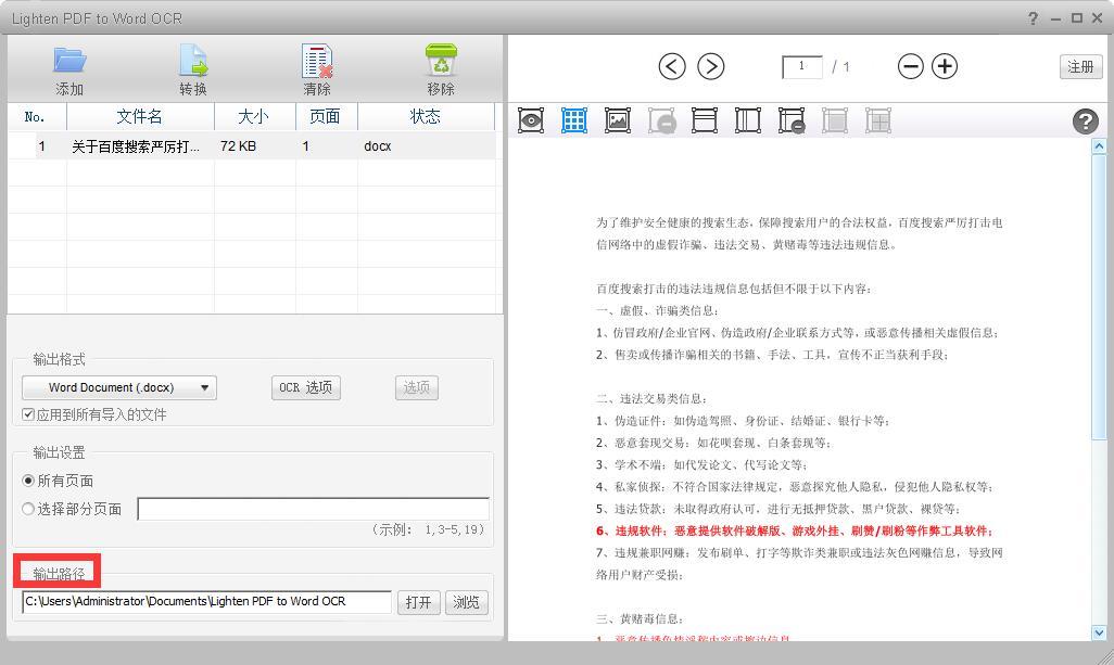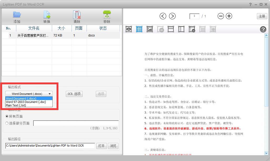 Lighten PDF to Word OCR最新版是一款专业且功能强大的PDF转换工具。Lighten PDF to Word OCR软件采用先进的光学字符识别(OCR)功能,能够准确识别和提取扫描PDF中的文本内容。通过Lighten PDF to Word OCR版用户能够复制或更改文档的部分内容,提高办公效率。
