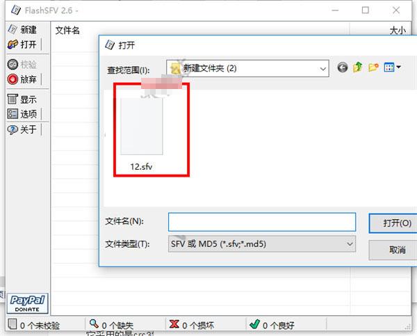 4、如果已经存在校验文件,我们就可以用来校验文件了。我们可以点击打开一个SFV,即可看到校验文件的细节。