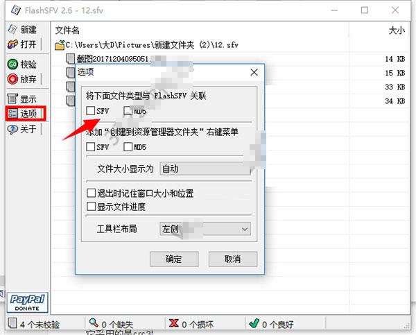 5、最后讲下选项设置。这里有设置关联SFV、MD5两种格式。