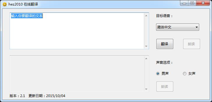 hez2010在线翻译版是一款相当实用和优秀的在线翻译软件,hez2010在线翻译版这款软件不仅支持51种语言的翻译,你可以在线将自己需要的文本内容翻译成想要的语言,hez2010在线翻译最新版并且软件还支持文本朗读功能,如果你有什么不会读的字或单词可以使用这款软件获取其发声。