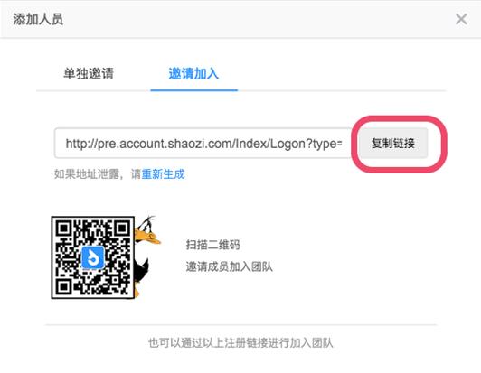 方式二:将链接复制后发送给员工,员工通过链接注册