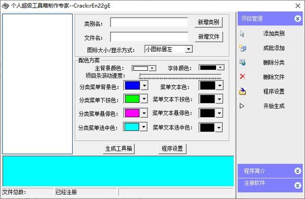 个人超级工具箱制作专家正式版是一款简单好用的制作工具。个人超级工具箱制作专家版支持自定义工具箱样式,管理工具的分类,能够让用户制作属于自己的超级工具箱。个人超级工具箱制作专家能够将exe文件集结到一起,创建文件夹,还能自行编辑菜单风格。