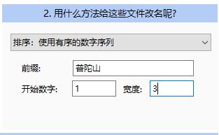【示例1】添加指定前缀并按数字编号。比如这次去普陀山游玩,排了100多张照片,想把这些照片的文件名修改为“普陀山001”, “普陀山002”……,方便将来查看。可以使用批量改名的排序策略,如图所示: